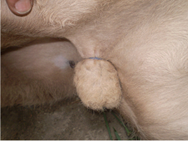Figure 3: If there's only one testis in the scrotum then do not castrate that animal - leave the animal, record its number and then ask your vet to check it at a later date