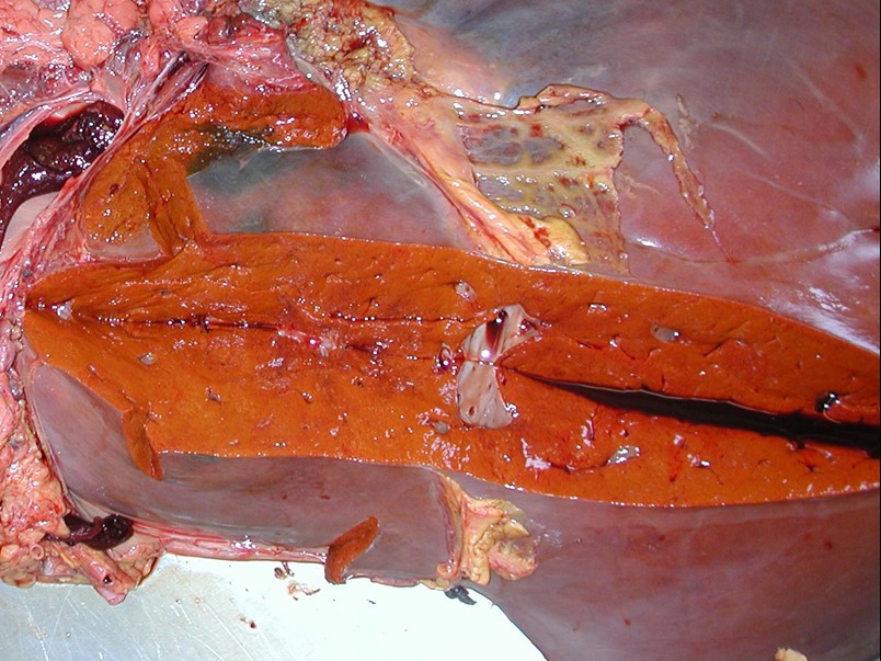 Copper toxicity is almost always seen as an acute disease, with cows suddenly becoming ill. However, illness is the end stage of a usually long process of chronic accumulation of copper in the liver over a period of weeks or even months. So although the onset of disease may be sudden, the problems causing the disease have been present for a long period of time. So the disease is actually chronic copper poisoning. The clinical signs are caused by the sudden release of a large amount of copper from the liver which leads to intravascular haemolysis (breakdown of blood cells in the blood vessels). This leads to anaemia, blood in the urine (haemoglobinuria), jaundice, colic and depression. There is often foetid diarrhoea. Affected animals will be weak, dull and depressed and have a poor appetite. As the disease progresses, severely affected animals will become recumbent before dying.