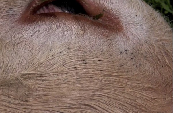 Figure 5. C. bovis lesions; the causative mite is identified in skin scrapings under the microscope