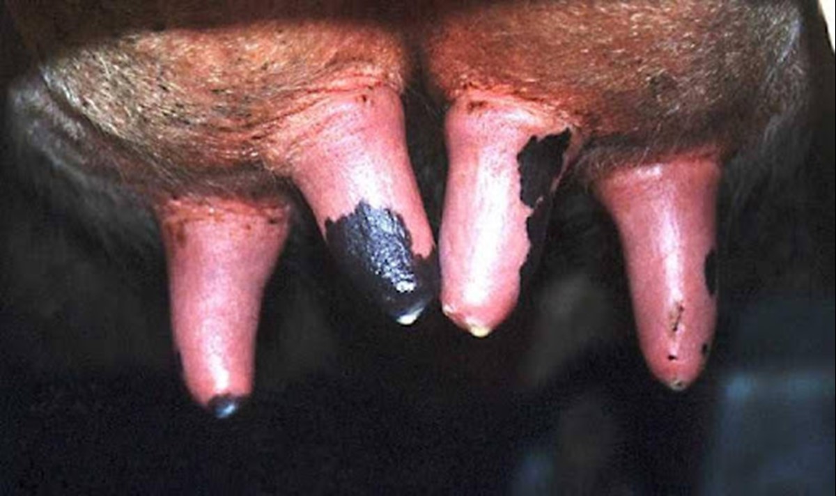Fig. 2 - Teat discolouration after milking.