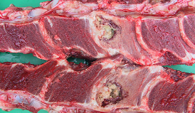 Fig 4: Infection of the neck vertebrae causing weakness of all four legs leading to recumbency in two to four month-old calves may be one manifestation of S.Dublin infection.