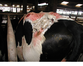 Fig 9: Dermatophilosis affecting out-wintered cattle.