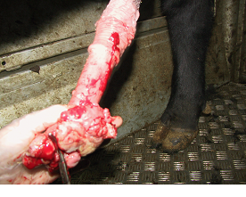 Fig 7: Attempted surgical removal of papillomas on the glans of a bull's penis under regional anaesthesia.