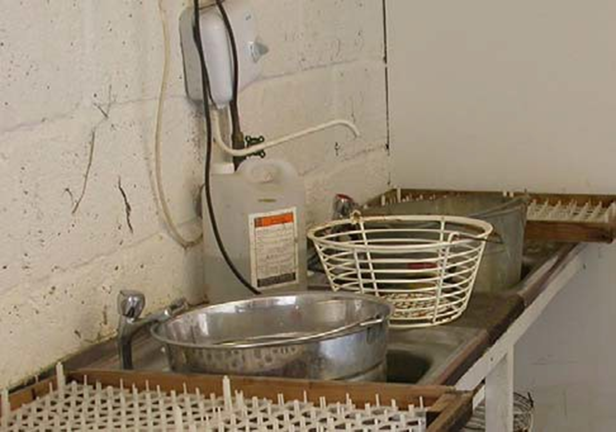 Take care with electrical equipment when being used close to a water supply (Fig 7). You should certainly NOT put egg washing machines in a sink. The risk of electrocution will be dramatically increased.