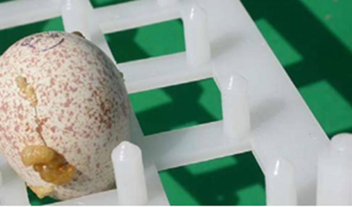 Ideally latex or synthetic gloves should be worn when setting eggs. However, this makes safe and speedy handling of the eggs difficult. All jewellery should be removed before handling eggs (Fig 10).