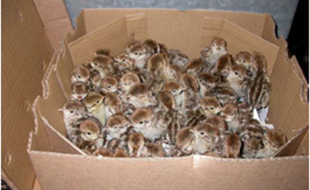 Chicks must be handled with great care when being taken off for boxing. They are very fragile and limb injuries at this age make them valueless.