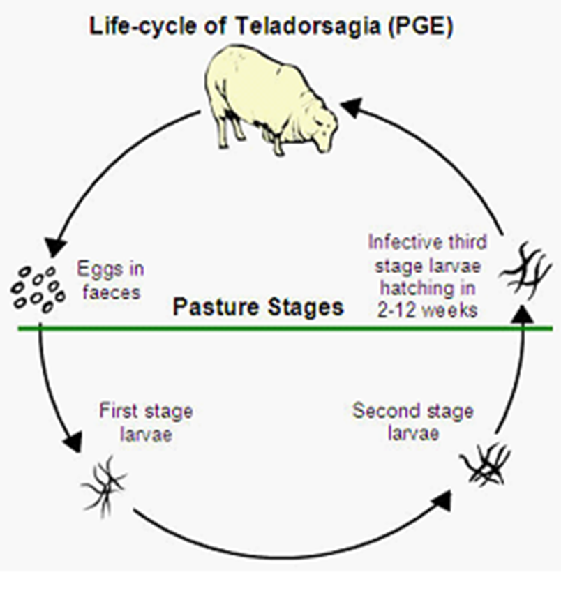 - Telodorsagia and Trichostrongylus species - cause parasitic gastroenteritis of growing lambs from mid-summer onwards. Disease may also be seen in older animals where control measures are inadequate or where there is concurrent disease e.g. Johne’s Disease which contributes to immunosuppression.