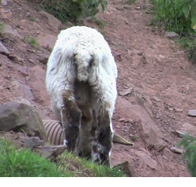 Fig 6: Field drain used as a water source by the lamb above - no other lambs were ever seen drinking in this manner.