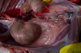 Fig 7: Necropsy reveals very pale swollen kidneys.