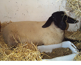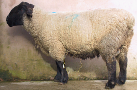 Fig 9: Dull and inappetant Suffolk shearling ram with chronic copper poisoning. Note the high concentrate ration.