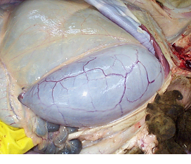 Fig 5: Massive bladder distension confirmed at necropsy - this ram had developed irreversible kidney damage because clinical signs were not noted for several days.