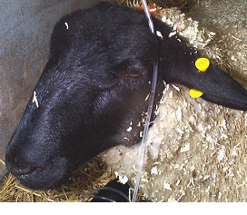 Fig 13: Severe dehydration and toxaemia in a pedigree Suffolk gimmer suffering from barley poisoning. This valuable sheep is being treated with intravenous fluids and made a good recovery.