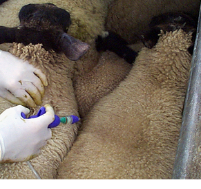 The only exception to single syringe/needle use is the administration of a vaccine to a number of sheep using an automatic syringe. In this situation it is essential that the fleece is clean, free from contamination, and dry. Vaccination of dirty or wet sheep should be delayed until the fleece is clean and dry otherwise there is the risk of introduction of bacteria with the vaccine and the development of an abscess at the injection site. A maximum of 20-25 sheep should be injected with one needle before it is changed (this number will often correspond to the number of doses in the bottle).