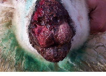 Fig 5: No response to drugs administered by the farmer to this weaned Scottish Blackface ram lamb.